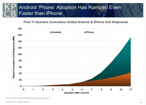 隨著Android手機越來越好,市場份額越來越大,Android的網(wǎng)絡效應會進一步放大,蘋果iPhone生態(tài)圈的優(yōu)勢將會消失。