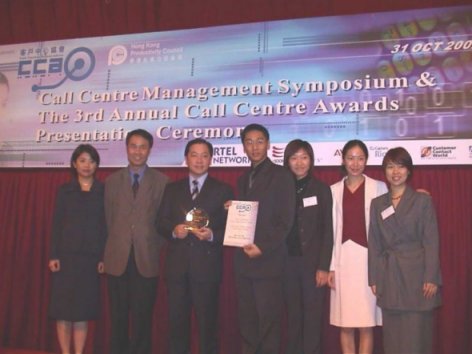 香港 2002年10月31日-在全球呼叫中心業(yè)享有盛譽(yù)的香港客戶中心協(xié)會日前宣布了2002年度各獎項獲獎名單。在今天下午舉行的第三屆年度呼叫中心頒獎典禮上,飛翱網(wǎng)訊成為年度最佳呼叫中心獎得主之一。這是繼去年以來,飛翱網(wǎng)訊連續(xù)第二年獲此殊榮。與此同時,來自于飛翱網(wǎng)訊香港公司的業(yè)務(wù)主管,Gray Ho先生被授予了呼叫中心團(tuán)隊領(lǐng)導(dǎo)人優(yōu)勝獎。經(jīng)過專家評審團(tuán)的層層篩選,飛翱網(wǎng)訊在各個考核指針上均有不俗的表現(xiàn),并最終從其它數(shù)十家香港呼叫中心運(yùn)營商中脫穎而出。
