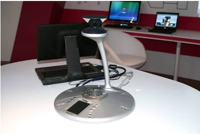 在耐心聽完介紹后,禁不住誘惑,我便親自做了現(xiàn)場體驗,原來這套系統(tǒng)所使用的360o攝像頭不同于一般的攝像頭,它集4個攝像頭以及USB設(shè)備為一體,不改變位置就能輕松實現(xiàn)360度全景覆蓋,讓所有人真正面對面交流。而投影儀的界面設(shè)定更是人性化,界面分上下兩部份,上半部分顯示的是PPT內(nèi)容和發(fā)言者,下半部分顯示的是與會人員。而它的智能語音識別系統(tǒng)更是讓人叫絕,投影儀上的發(fā)言區(qū)頭像根據(jù)發(fā)言者的聲音自動更換,而不受人聲以外的任何聲音的干擾。系統(tǒng)并附帶情景解說詞,系統(tǒng)會自動介紹與會人員所在地。在投放PPT界面旁邊有個信息欄,在上面能夠看到負責人的在線信息,并且可以選擇最合適的方式進行溝通,不但可以發(fā)即時消息和傳輸文件,還可以進行語音通話,甚至可以直接用語音連接辦公室電話,只要有網(wǎng)絡(luò),隨便哪里都可以接得到辦公室電話。
